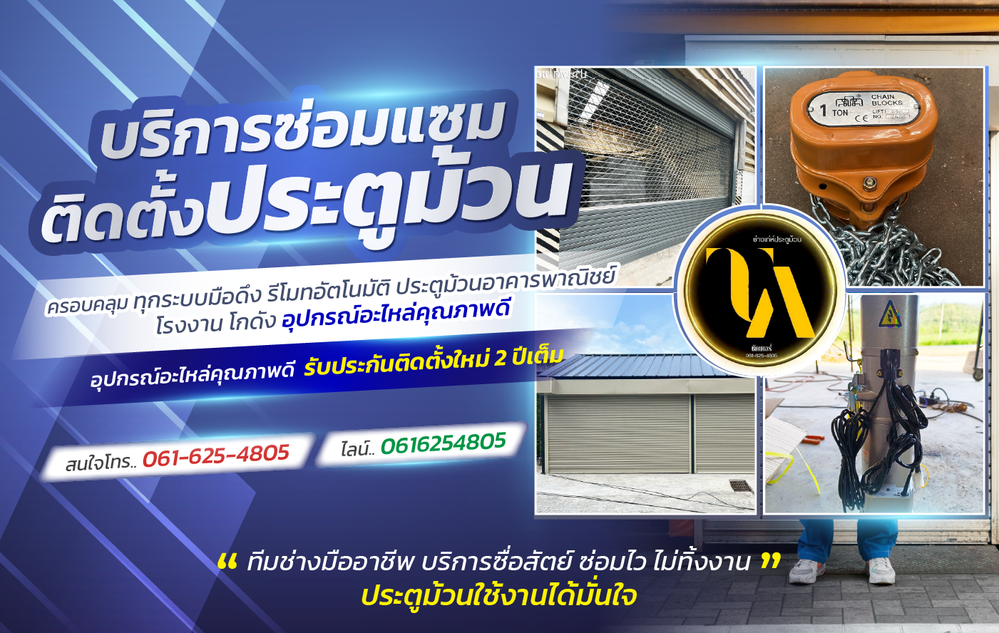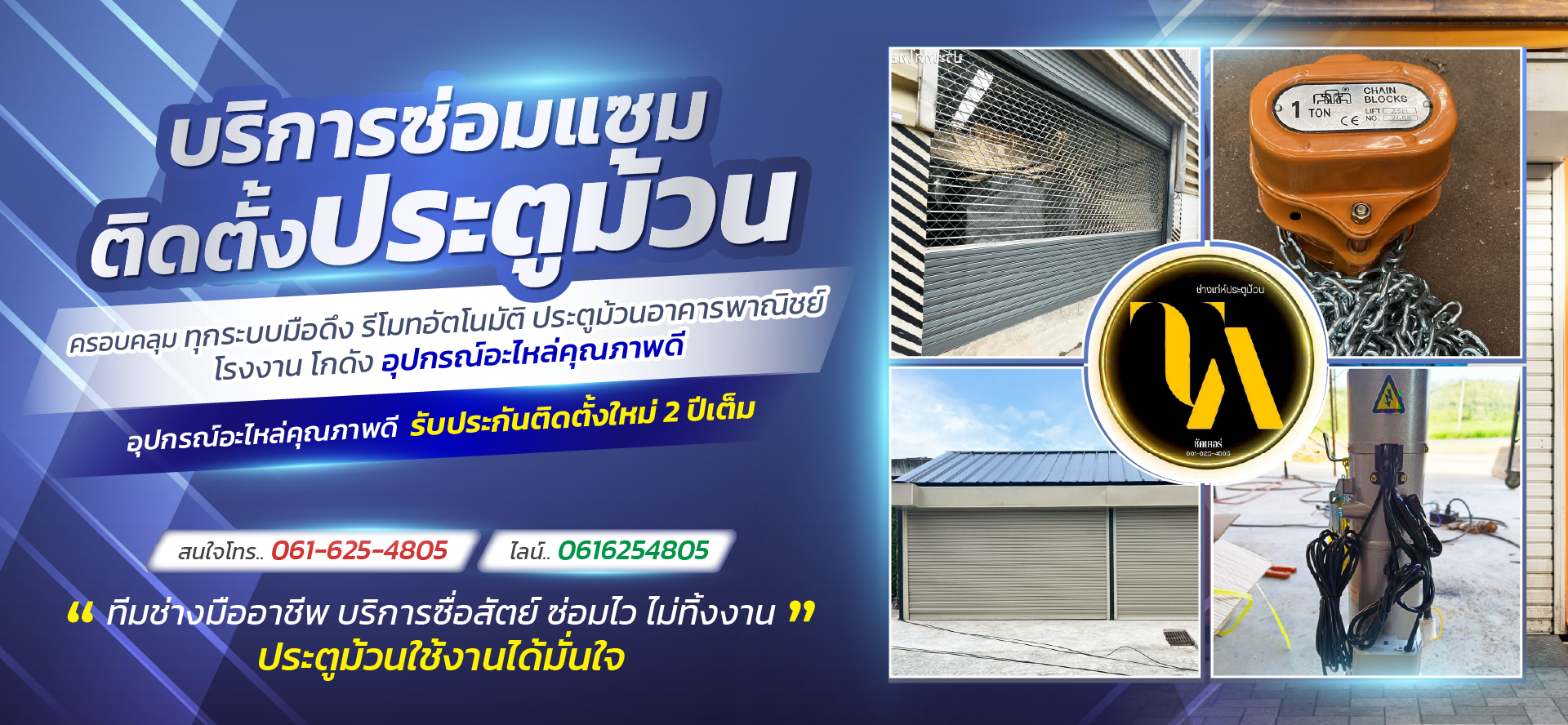 แก้ไขปัญหาประตูม้วนติด ขึ้น-ลงไม่ได้ มอเตอร์เสีย ลูกปืนพัง หรือสายสลิงขาด ฯลฯ